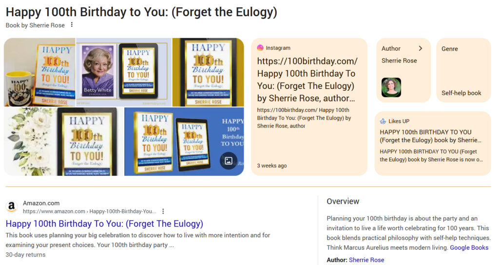HAPPY 100th BIRTHDAY TO YOU (Forget the Eulogy) book by Sherrie Rose is now out!